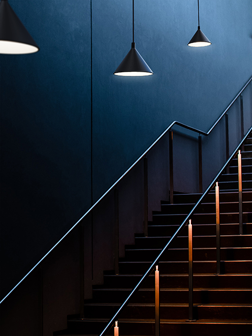 Lumo är en klassisk konformad pendelarmatur, pressgjuten i aluminium. Den hela sex millimeter tjocka skärmen avslutas elegant med en snäll fullradie. Bländskyddet är osynligt monterat i skärmen på ett sätt som undviker bländning. Lumo kan byggas ihop till olika railarmaturer i raka, runda, tre- och fyrkantiga formationer med finurlig upphängning genom armaturens kablar. Diameter 250 mm. Inbyggd LED modul med möjlighet till Dali styrning. Alternativt med GU10 sockel inklusive 4,9W eller 6,2W dimbar LED ljuskälla.