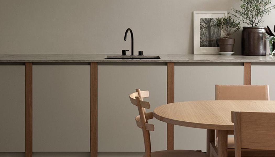 Köket är designat i sann Gärsnäs-anda med nedtonad färgskala och med mycket kärlek i detaljerna. En fusion mellan ett kök och en vacker möbel, där det anrika hittar hem i det moderna. Precis som intentionen var. Ett tidlöst kök som smälter in i rummet, med klassiska former och minimalistiska detaljer.
