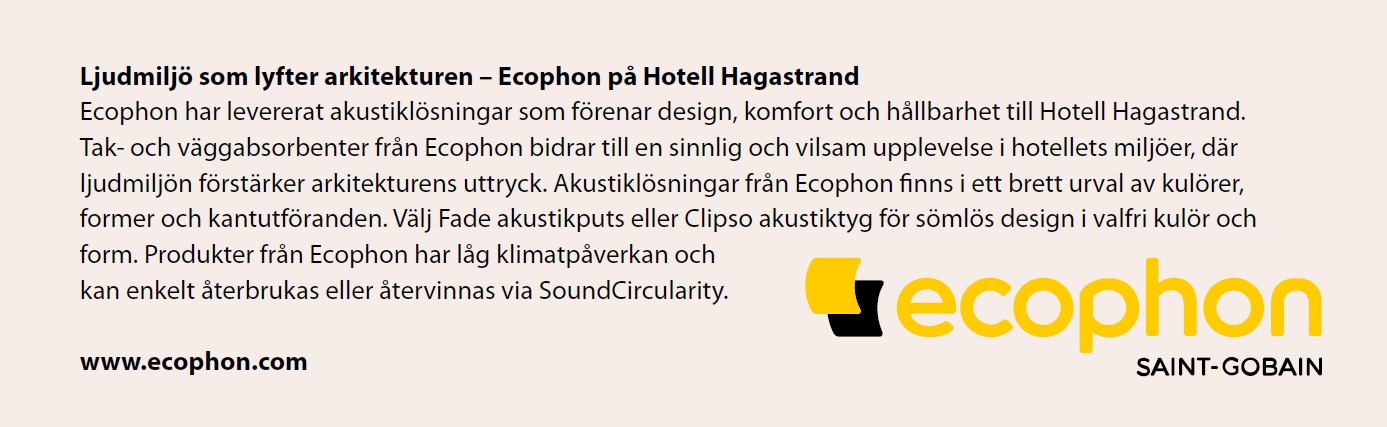 När Nobis öppnar hotell- och spakonceptet Hagastrand strax utanför Stockholm sker det med lika delar djärvhet och varsamhet. Wingårdhs har skapat en miljö där grafiska detaljer, taktila material och en väl avvägd rumsupplevelse samspelar i ett modernt och inbjudande uttryck.