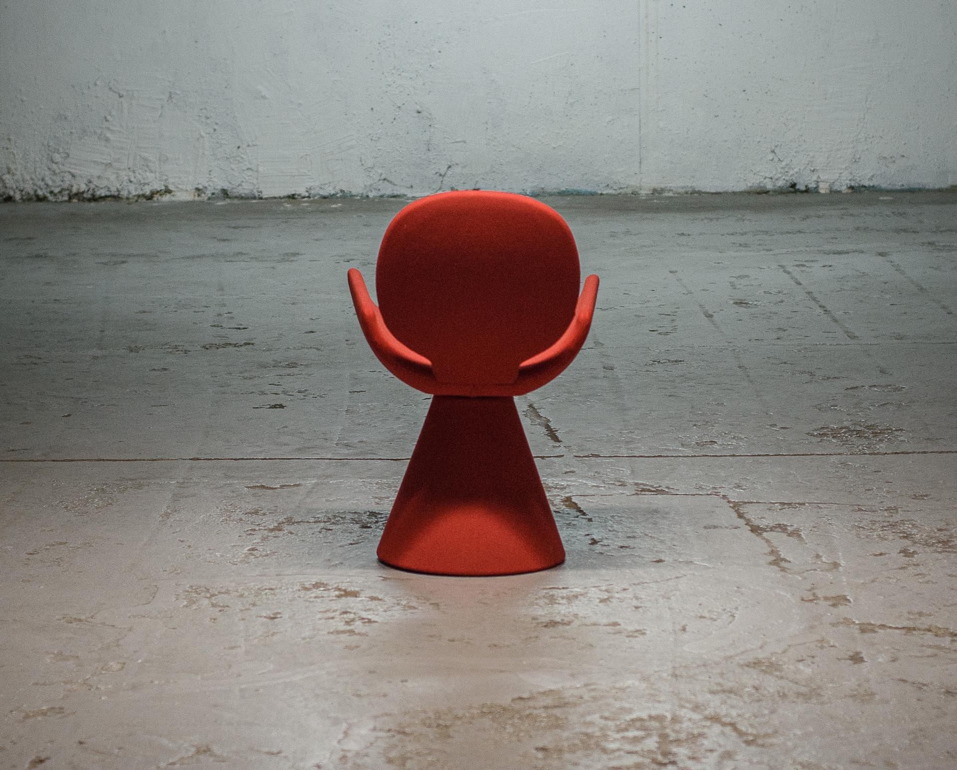 Formen bygger på ett spel av harmoniska proportioner: den koniska basen stödjer ett brett och inbjudande sittande, medan ryggstöd och armstöd öppnar upp i kontinuerliga, omslutande linjer, vilket ger en känsla av balans och mjukhet. Helt klädd i tyg eller läder kombinerar Youpi visuell och taktil komfort med en tydlig form. Den visar hur Bonaldo kan omsätta en idé i en fysisk produkt där estetik och funktion möts på ett naturligt sätt.