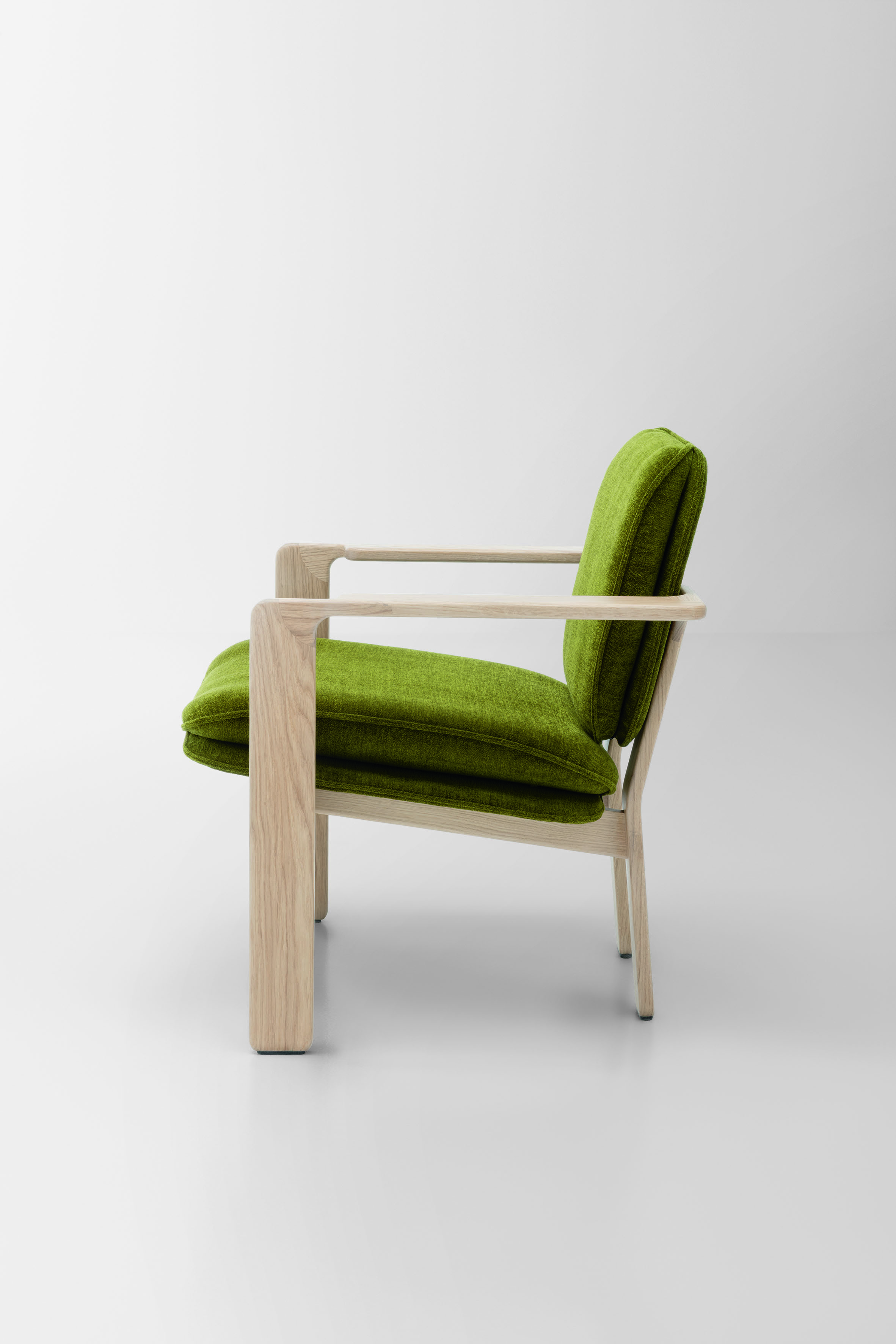 Berni designades ursprungligen av Franco Poli 1980 för Bernini SpA—ett företag som under 1980-talet var känt för italiensk trähantverksskicklighet. Berni-fåtöljen kombinerar ergonomiska principer med genomtänkta konstruktionsdetaljer. I denna nya utgåva, tolkat genom Paola Lentis textila uttryck, har de ursprungliga metallfogarna ersatts med träinlägg, noggrant designade av Poli själv. De studerade proportionerna ger stöd och bidrar till en bekväm sittställning.