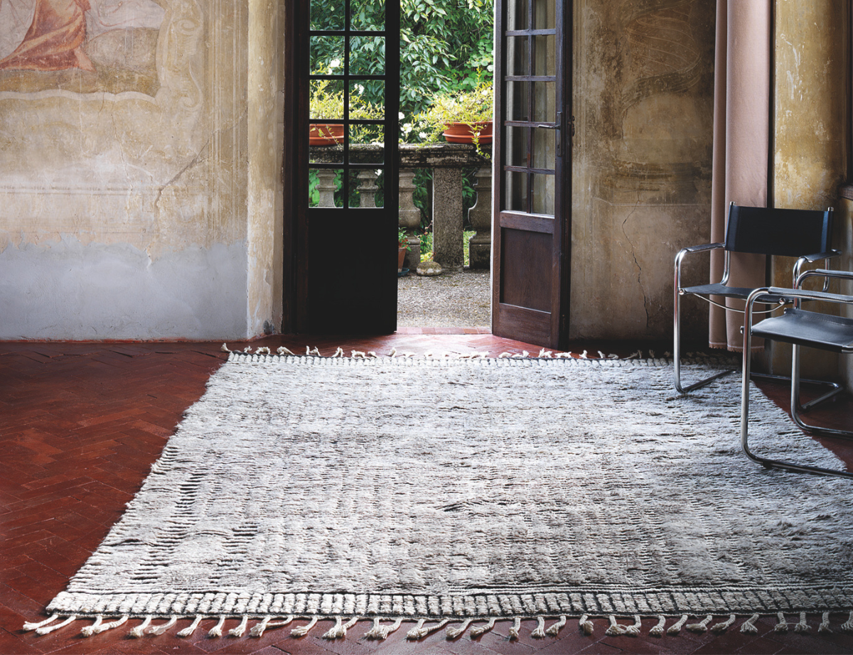 Nomad Atlas har fått sitt namn från Atlasbergen i Marocko. De geometriska, abstrakta mönstren och färgskalan i Ivory, Beige, Silver, Taupe/Jeans, Tobacco, Black, Blue, Green och Gold refererar till bergens former och dalgångar. Mattorna tillverkas i olika kombinationer av ull, bambu och bomull och finns i storleken 250 × 300 cm eller i måttbeställda utföranden.